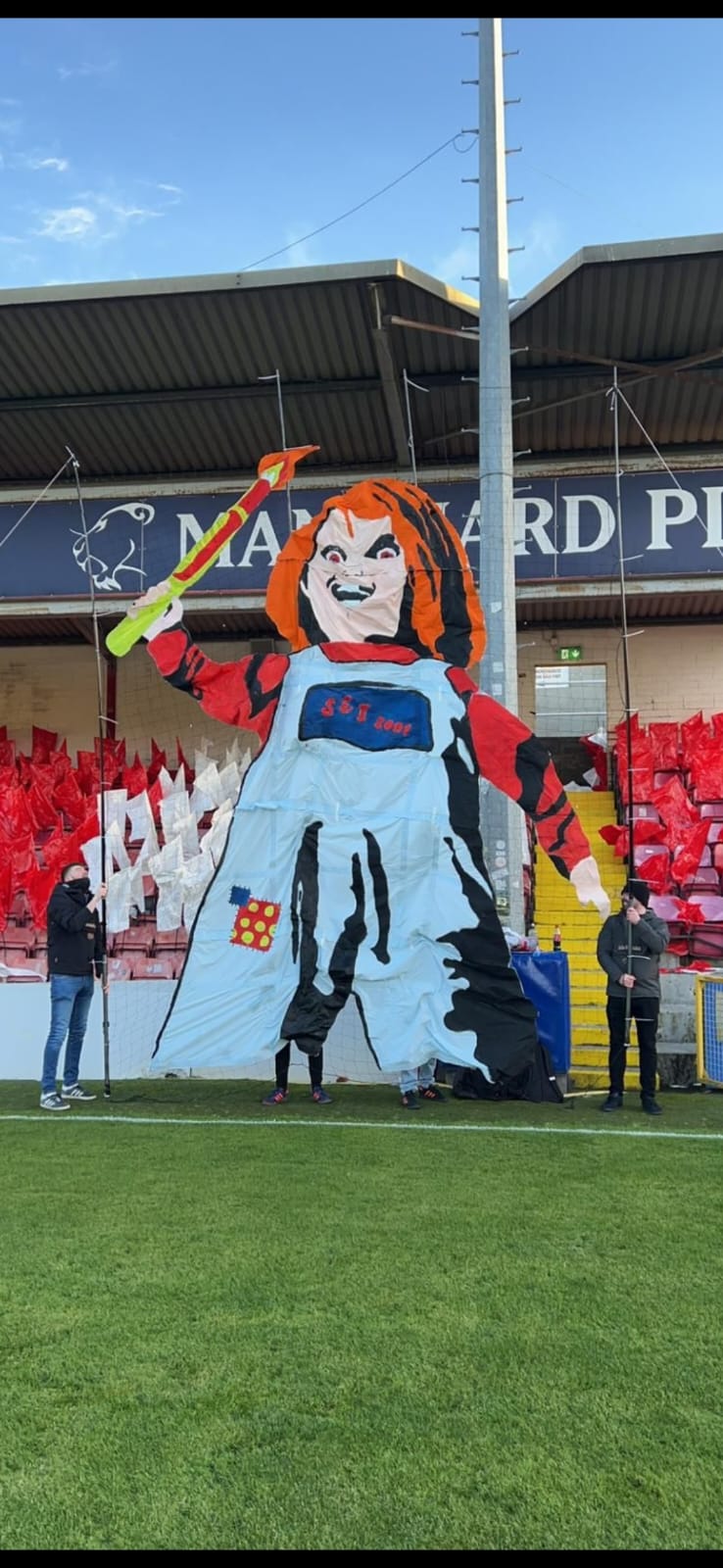 A little known bit a trivia. A section of the St. Pat’s supporters called “The Shed End Invincibles” have another off shoot group that we know as the St. Pat’s Flagmakers.