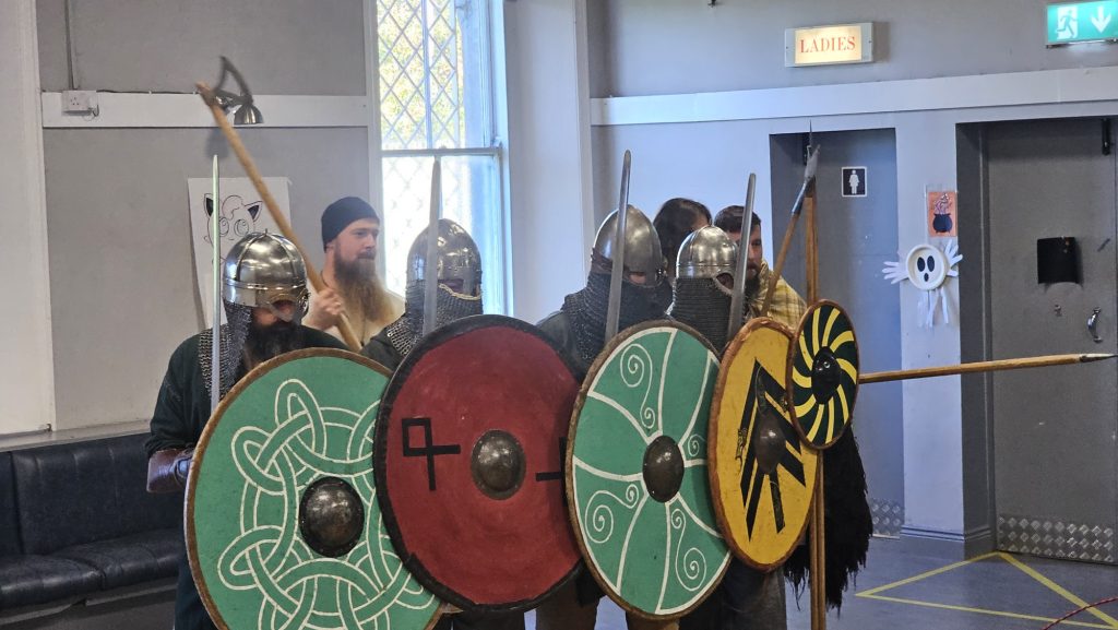 The younger 3 year old kids were somewhat frightened but captivated by the appearance of the Vikings and strange eye coverings. When asked if they wanted to leave it was a case of “could you hold me up. We can stay to see some more fighting”. Surprisingly, the menace of armour, chainmail and clunking crash of cold steel was a magnetic draw for the kids.
