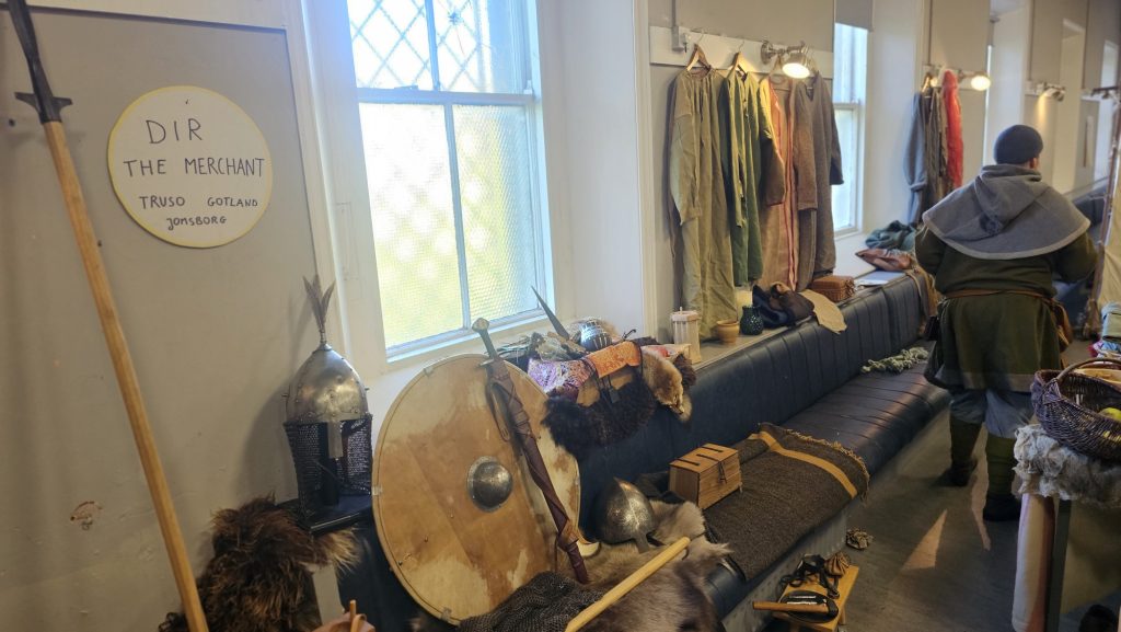 In the inhospitable environments from centuries past, typical attire consisted of woolen tunics and hats. This drinking vessel, made from a Polish cow horn, caught our eye. The cow horn itself was incredibly smooth with metal trimmings encasing each endpoint. In terms of preservation, the interior was coated with beeswax for smoothness and longevity. Ales and meades were consumed from these utensils. Highly acidic alcoholic beverages such as whiskey or other spirits were kept away, as they destroy the inner lining of the vessel. This Viking was contained behind a brass bar, away from more Guinness… in case we ran dry.