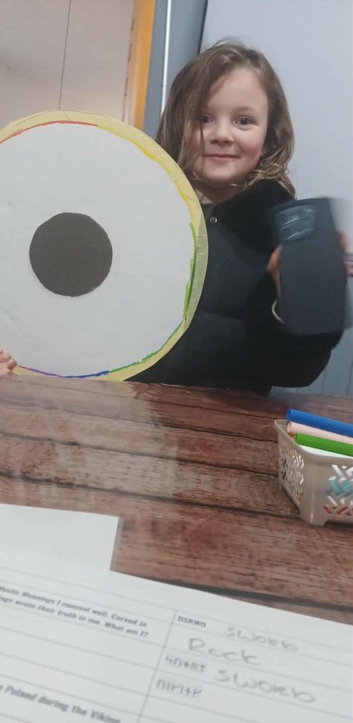 A huge shout out to the wonderful duo of Grazyna Chyla Kaczmarek and Juliusz Kaczmarek, who brought their unique ceramic and Viking arts activities to our CIE Hall. It’s under stating the activity by saying it went down stunningly well with the children. Making and colouring the Viking shields was a winner with the younger kids, as can be seen through the proud expression radiating from a resident on the square, with her newly crafted Viking shield.