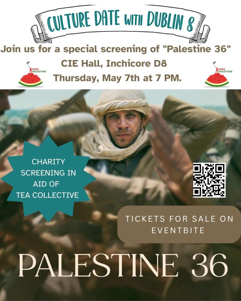 Make a date to visit the CIE Hall as part of Culture Date with Dublin 8 Palestine 36 – Thursday 07.05.2026